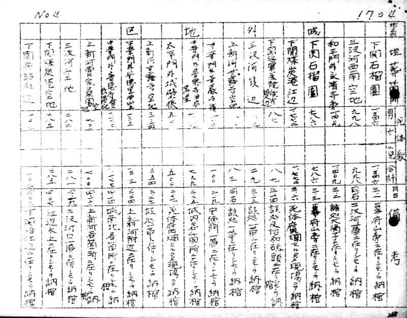 ※「城内埋葬」は1,793体だが、上記は全て収容場所を基準にした分類。